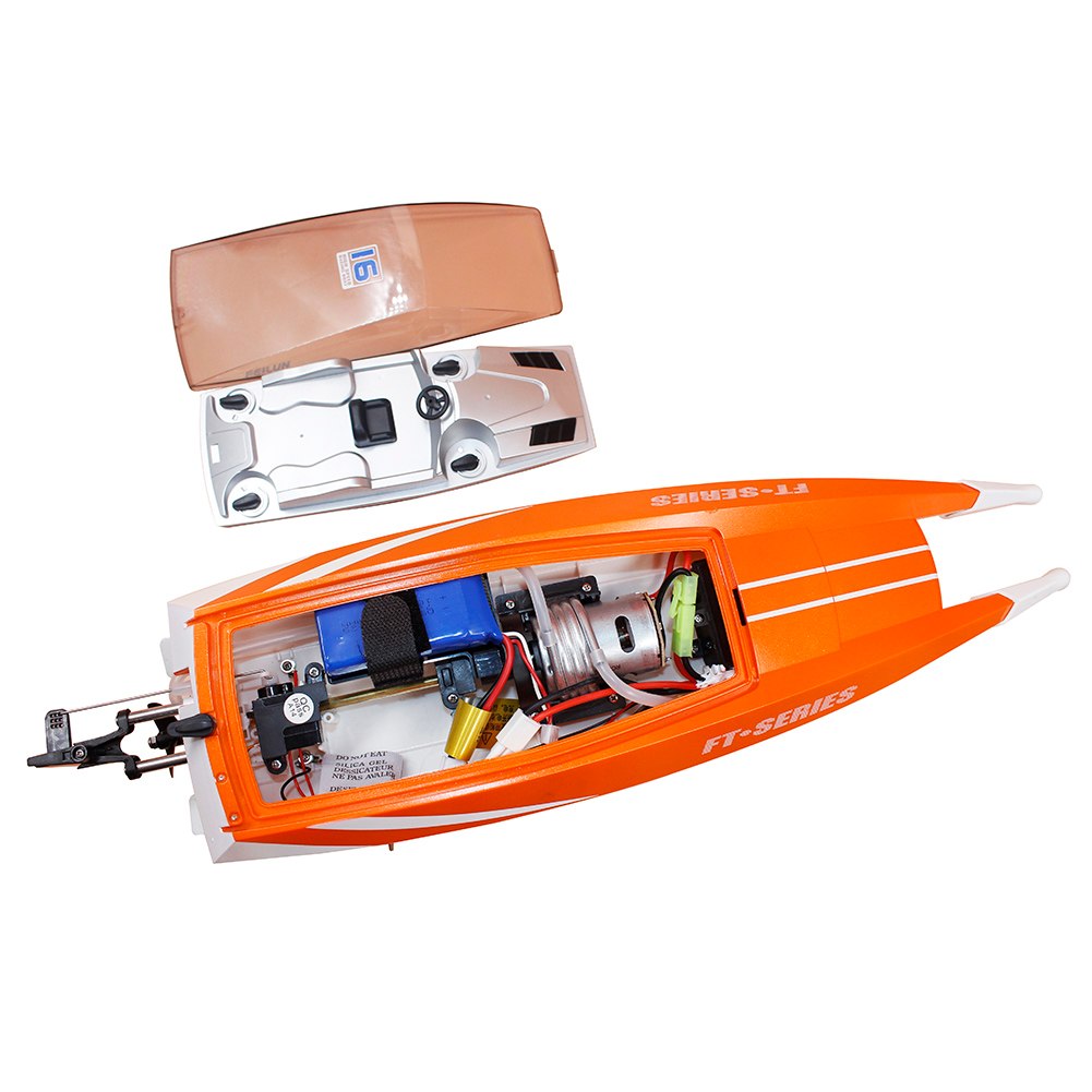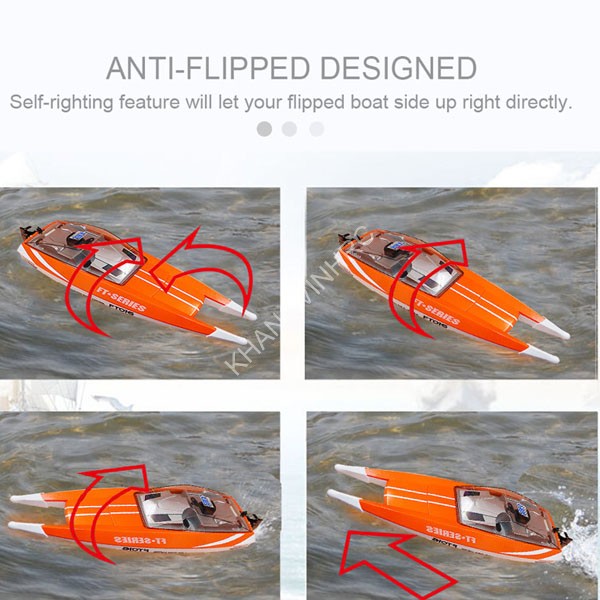 Máy thu 4CH 2.4G, trọng lượng thuyền 1.425kg và thân máy bền.