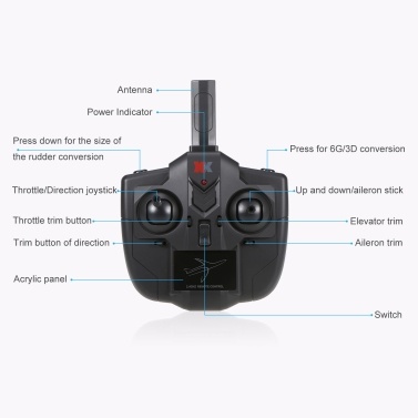 - Tích hợp hệ thống tự ổn định chuyến bay con quay hồi chuyển 6 trục, với động cơ chổi than không lõi 1020, khiến đường bay ổn định hơn. Có thể chuyển đổi chế độ 3D/6G điều khiển từ xa theo ý muốn, và chế độ 6G phù hợp cho người mới bắt đầu bay.