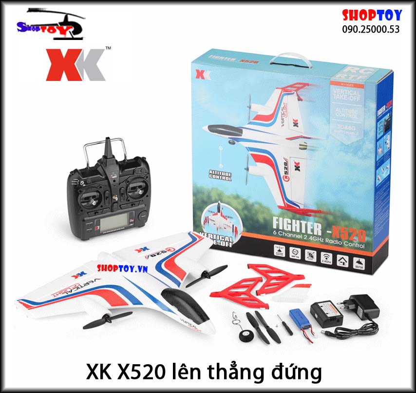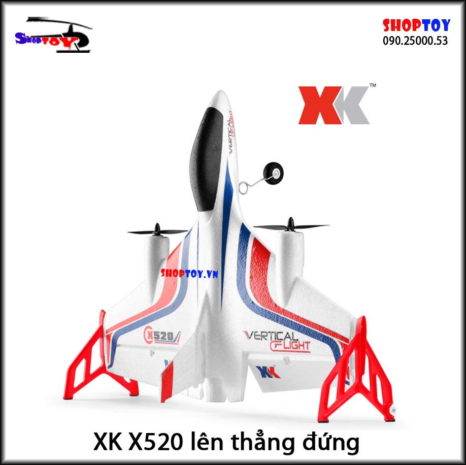 X520 là mẫu cánh bằng có khả năng cất cánh và hạ cánh thẳng đứng của hãng XK. Nhờ thiết kế độc đáo, X520 có thể cất cánh và hạ cánh trong không gian hẹp, không cần đường băng. X520 có thể hỗ trợ người mới chơi bằng chế độ bay 6G tự cân bằng, giúp người chơi dễ bay hơn. Còn với người đã bay quen, nhờ 2 motor brushless, X520 có thể bay với tốc độ rất cao, thực hiện những động tác nhào lộn khó ở chế độ bay 3D.