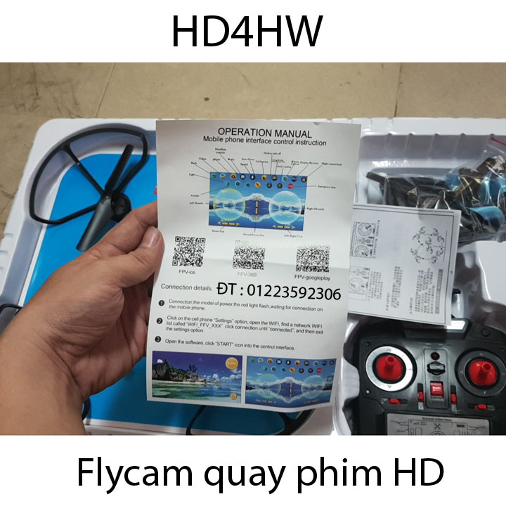 - Phụ kiện: 2 cánh dự phòng, 2 chân máy bay, 1 sạc usb, 1 sạch hướng dẫn tiếng anh, giá đơ điện thoại.
