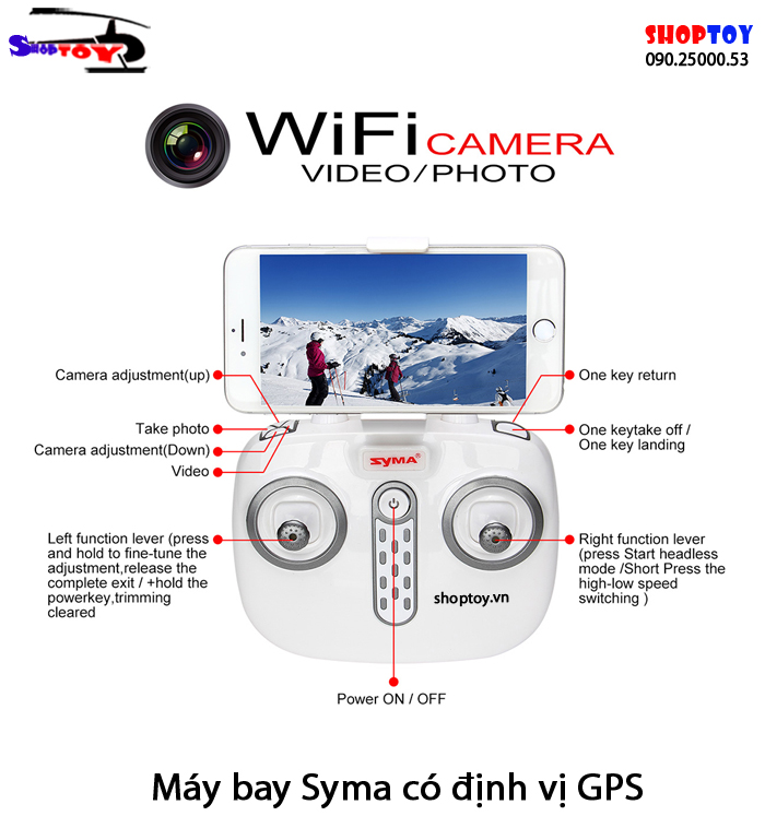 Là sản phẩm mới nhất của hãng SYMA, đi kèm với một bộ cảm biến hình ảnh Full HD có thể quay, chụp ảnh từ trên không.