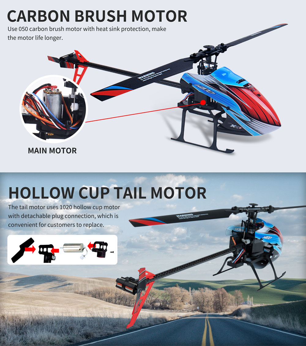 - Drive Motor: Main Motor*1 (Carbon Brush) 050 Tail Motor*1 (Hollow Cup) 1020
