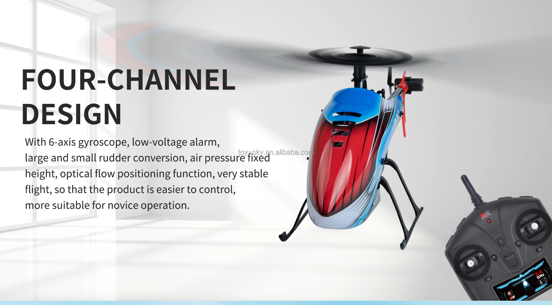 1. Không có cánh phụ, thiết kế 4 kênh đơn giản, sử dụng con quay hồi chuyển 6 trục, với chức năng định vị quang học và định áp độ cao. Thiết kế của thiết kế nguyên lý khí lực là sức mạnh mạnh mẽ và sự tự ổn định của máy bay. Có chức năng cất cánh và hạ cánh bằng một nút, giúp điều khiển dễ dàng hơn và phù hợp hơn cho người mới chơi.