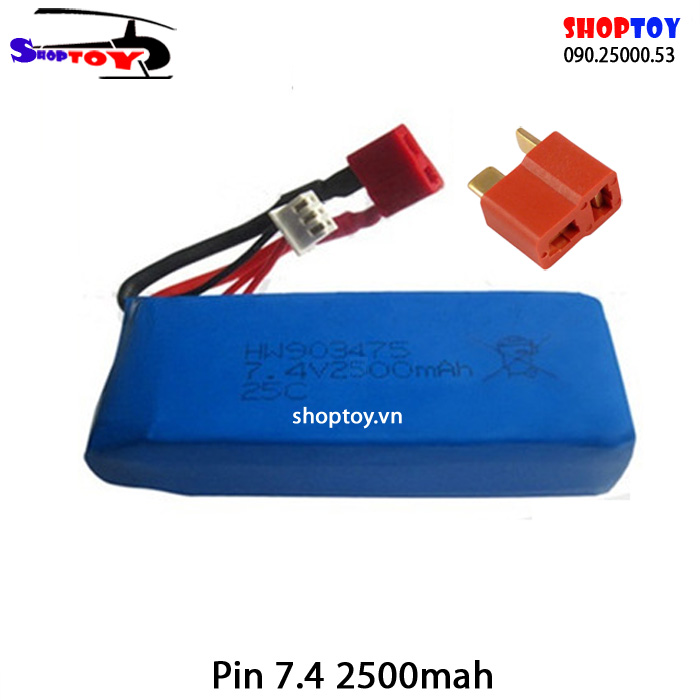 Pin sạc 7.4 V 2500 mah jack T đỏ cho xe điều khiển.