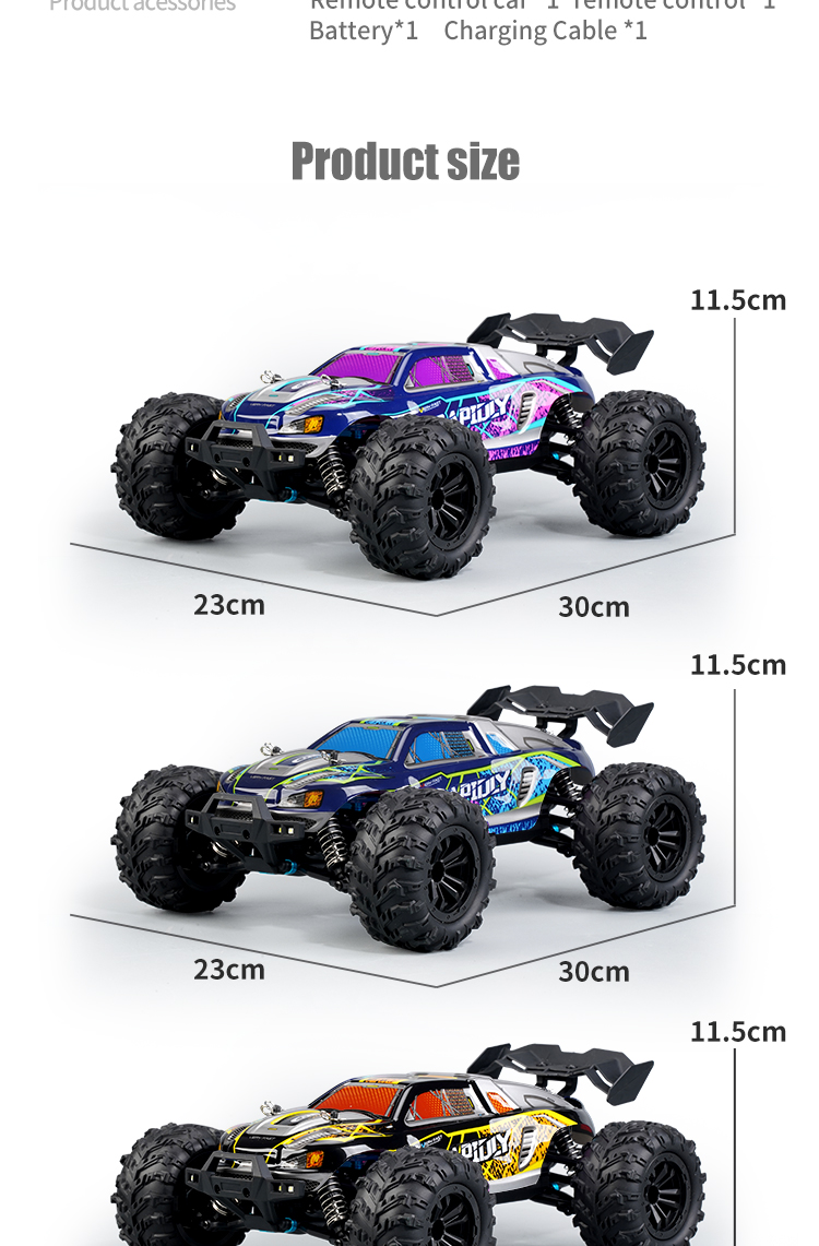【Hỗ trợ va chạm】: Được làm bằng vỏ PVC chống nổ có độ bền cao, xe RC sử dụng thiết kế lò xo thẳng đứng phía trước và phía sau, và 4 bộ giảm xóc độc lập lớn, có tác dụng hỗ trợ va chạm tuyệt vời và có thể thích ứng hiệu quả với nhiều độ cao và gồ ghề khác nhau.