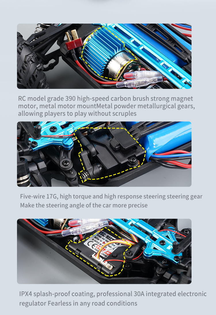 【Drift tốc độ】: Được trang bị động cơ công suất mạnh RC390 và được thiết kế với bộ vi sai hành tinh bánh trước và bánh sau độc đáo, xe đua có thể drift và đạt tốc độ 50km/h, mang đến cho bạn trải nghiệm drift thú vị.
