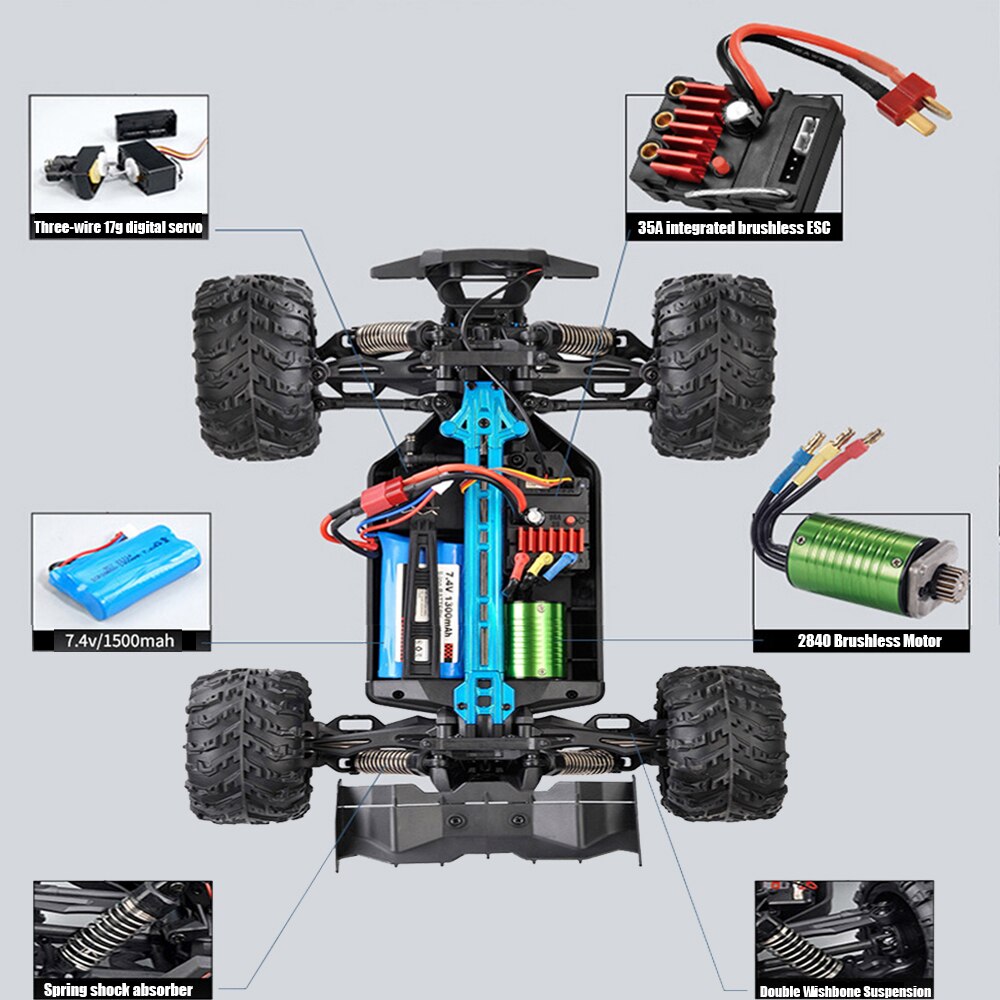 Xe địa hình điều khiển tốc độ cao 70km/h Brushless moto ko chổi than 1/16 4wd Wl101 PRO
