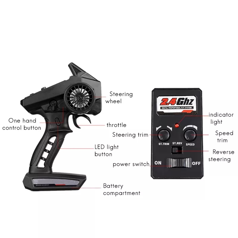 - Hệ thống điều khiển từ xa đồng bộ toàn quy mô 2.4G. Hệ thống ga / lái toàn diện