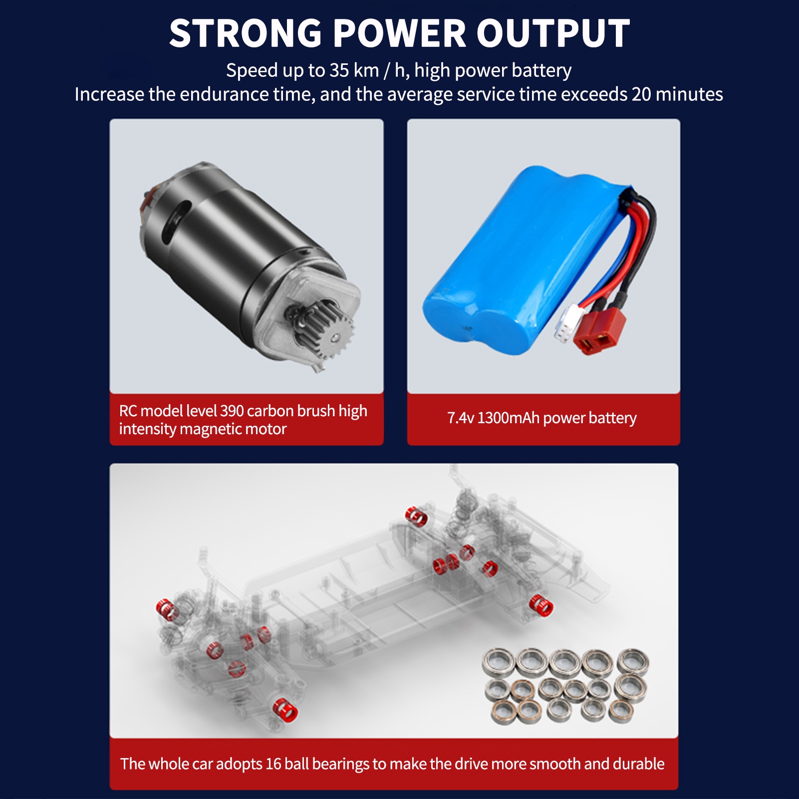 - Động cơ: Động cơ carbon chổi than tốc độ cao RC390