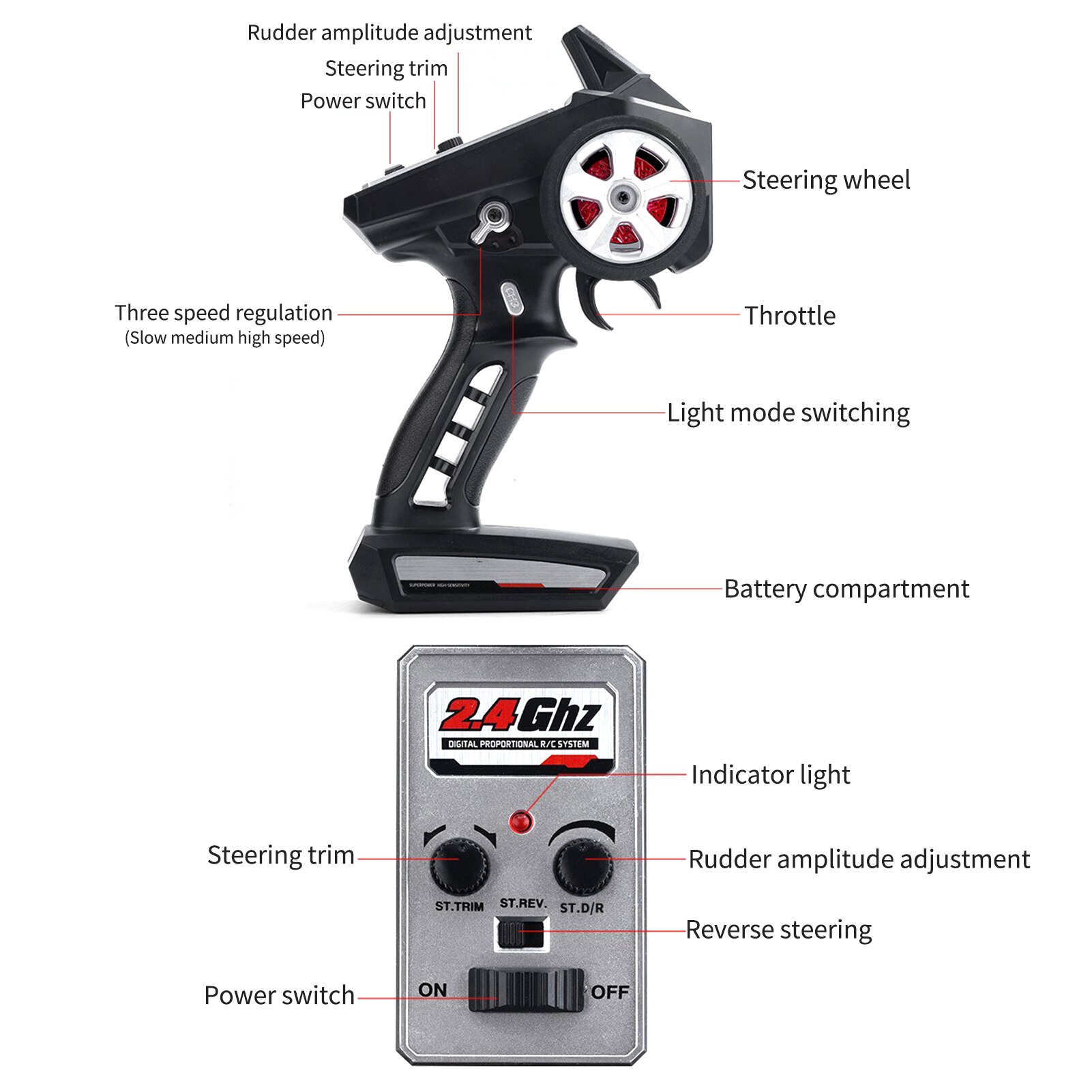 5. Hệ thống điều khiển từ xa chuẩn 2.4G, điều khiển/tay lái mượt mà;