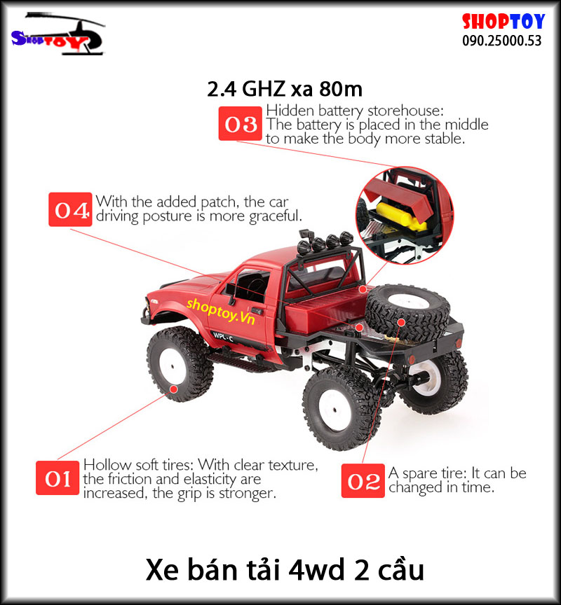 Xe Tải Quân Sự Mỹ Điều Khiển Từ Xa Military WPL C24 4WD 1:16